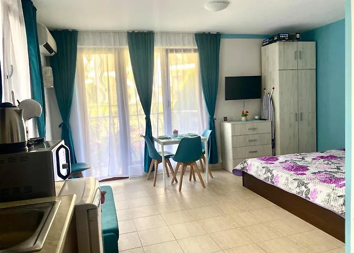 Studio Blue Triumph Sveti Vlas, som erbjuder en privat pool, ligger bara 350 m från Church "Saint Vlasiy". 6 km från den 39 m² stora lägenheten hittar du Sjukhus.